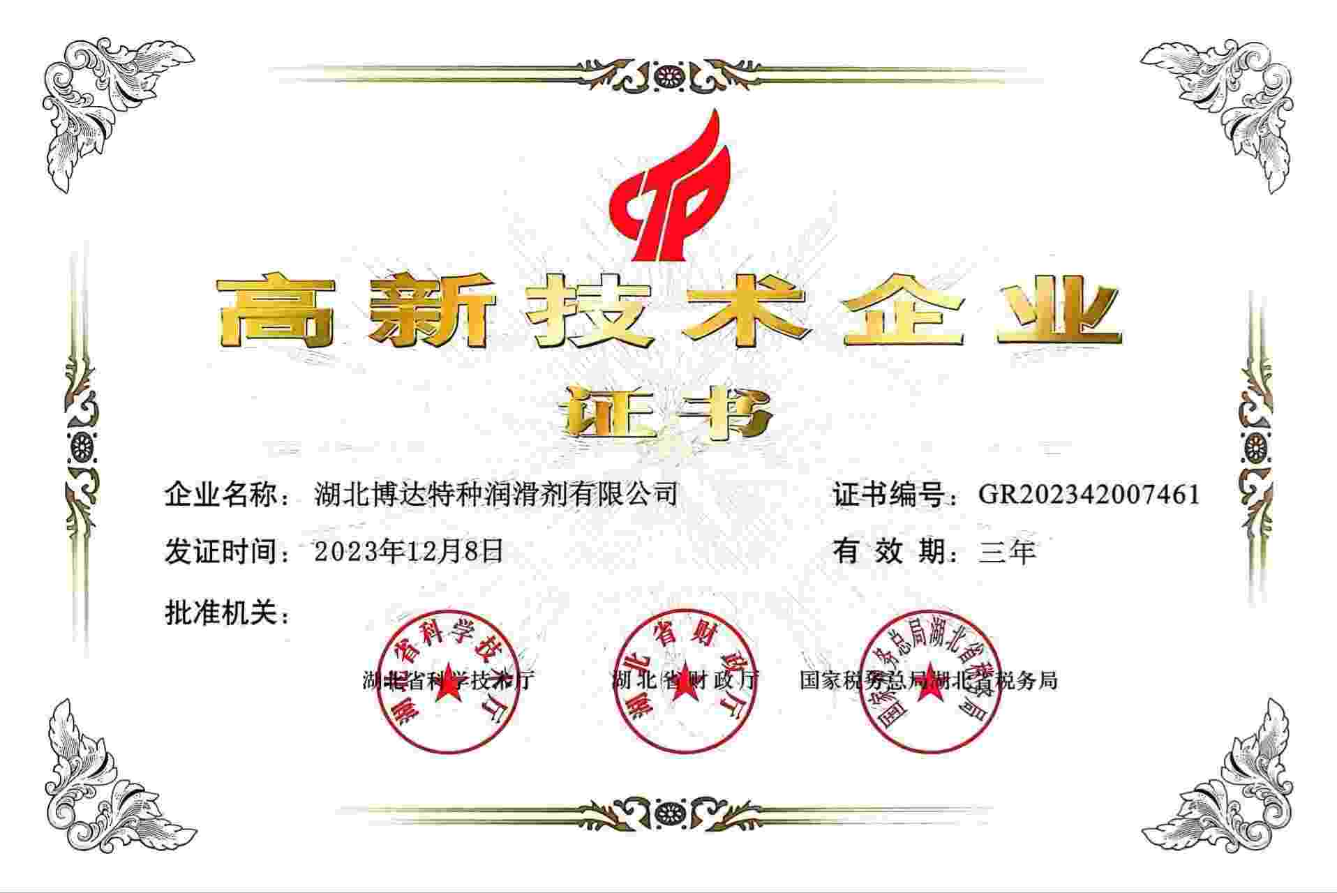 Hubei Boda Special Lubricants Co., Ltd., established in 1998, is headquartered in Wuhan East Lake High-Tech Development Zone, a national independent innovation demonstration zone. It is a national high-tech enterprise integrating the research and development, production, sales, and service of special lubricants. Boda owns multiple invention patents and offers over three hundred types of lubrication products across three major categories. With more than 150 employees and annual sales revenue exceeding 100 million yuan, Boda has thousands of customers worldwide and has passed the ISO9001 international quality system certification.