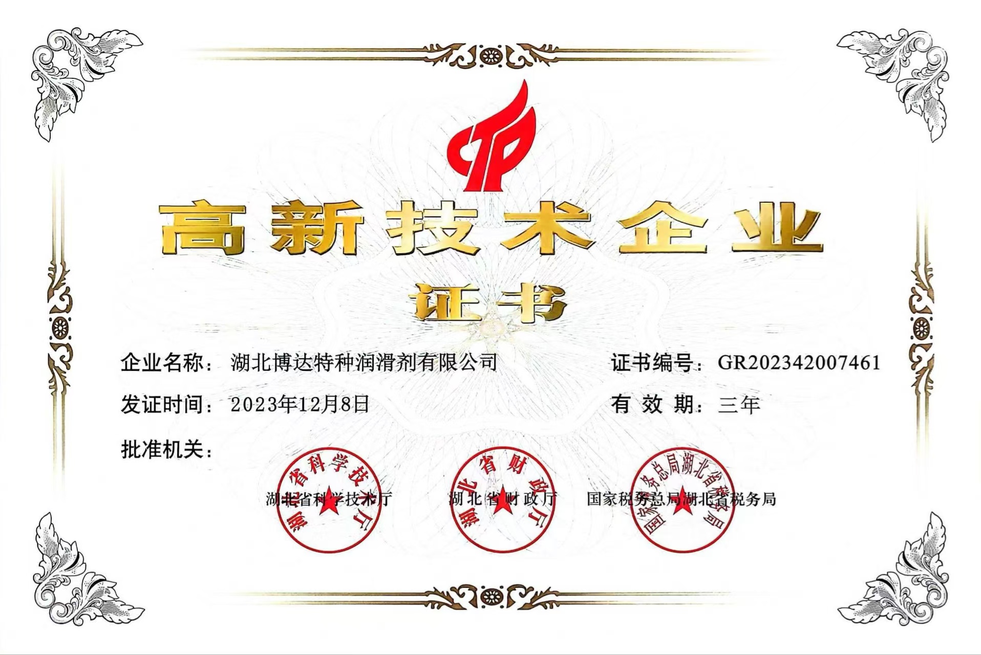 博达特种润滑剂有限公司成立于1998年,总部位于国家自主创新示范区——武汉东湖高新技术开发区,是一家集特种润滑油脂研发、生产、销售、服务于一体的国家高新技术企业。博达拥有多项发明专利,三大类三百余种润滑产品,员工人数一百五十多人,年销售收入上亿元,上千家客户遍布全球,通过ISO9001国际质量体系认证。
